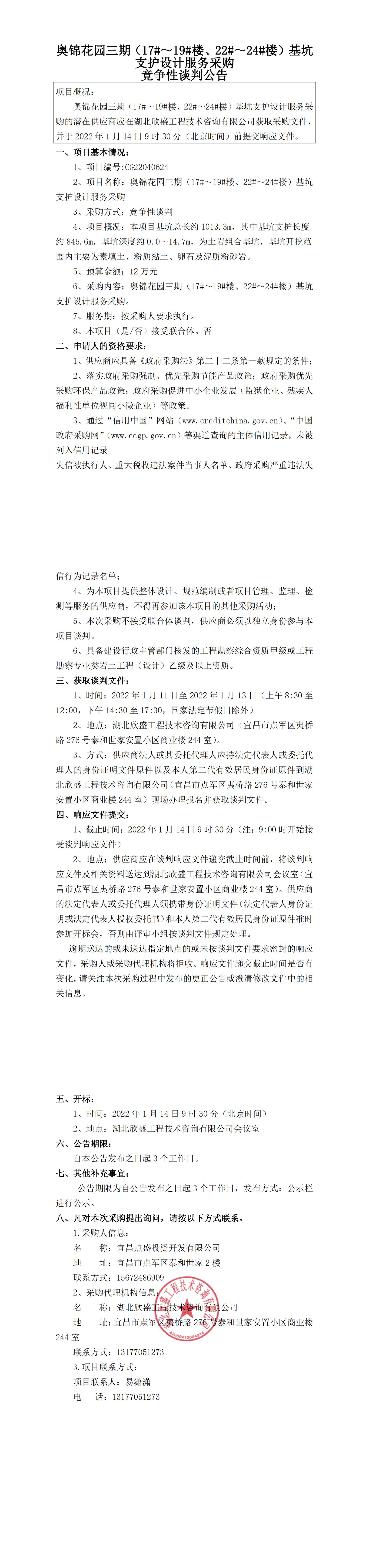 奧錦花園三期(17#~19#樓、22#~24#樓)基坑支護設計服務采購競爭性談判公告