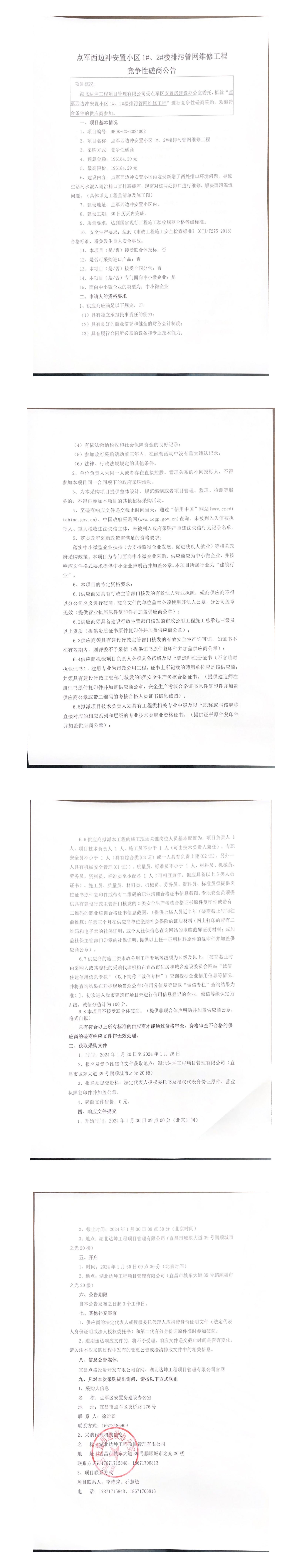 點(diǎn)軍西邊沖安置小區(qū)1#、2#樓排污管網(wǎng)維修工程競(jìng)爭(zhēng)性磋商公告
