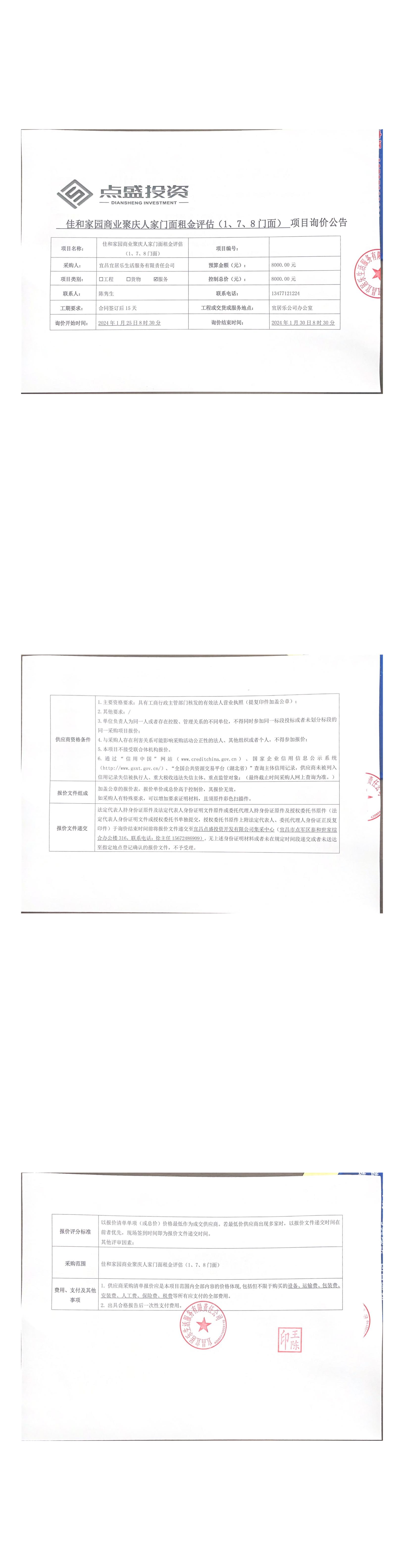 佳和家園商業(yè)聚慶人家門(mén)面租金評(píng)估(1、7、8門(mén)面)詢價(jià)公告