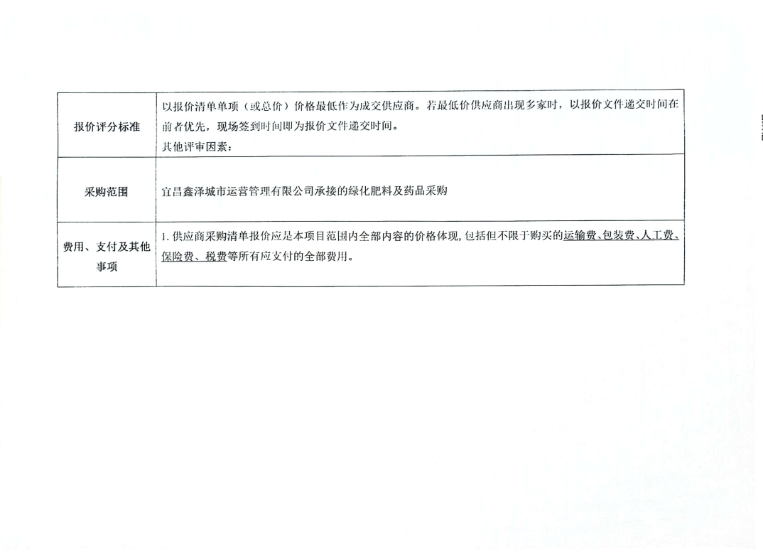宜昌鑫澤城市運(yùn)營(yíng)管理有限公司綠化肥料及藥品采購(gòu)項(xiàng)目詢價(jià)公告