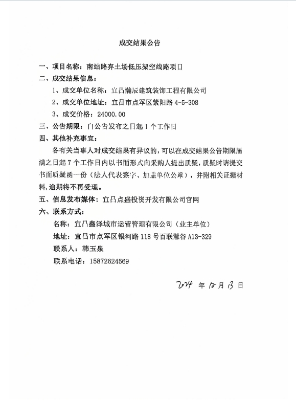 南站路棄土場(chǎng)低壓架空線路項(xiàng)目成交公告