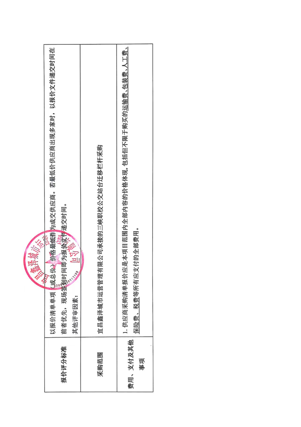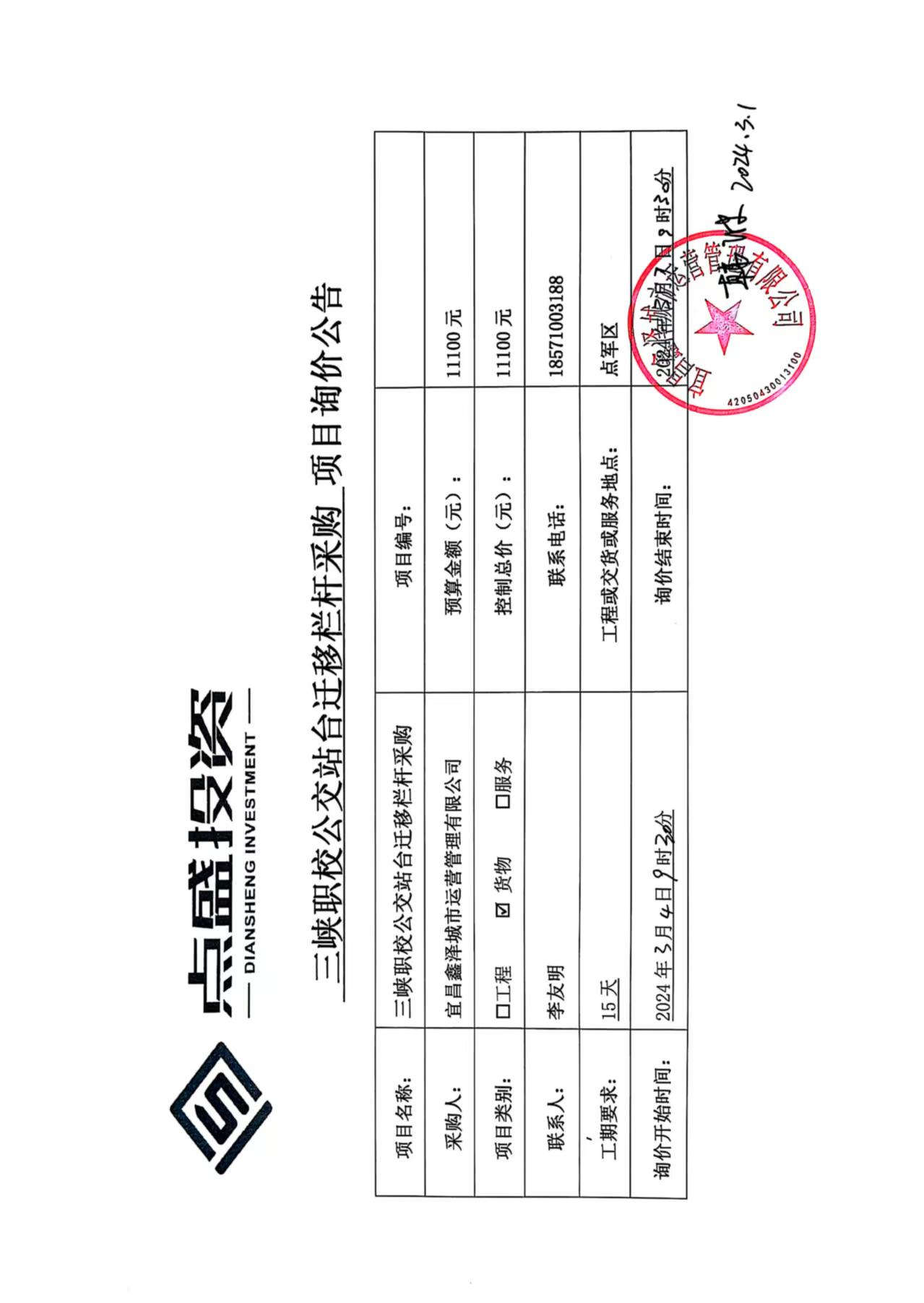 三峽職校公交站臺(tái)遷移欄桿采購(gòu)詢(xún)價(jià)公告