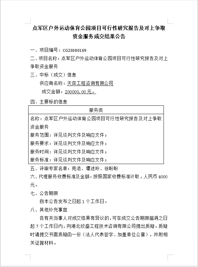 點(diǎn)軍區(qū)戶(hù)外運(yùn)動(dòng)體育公園項(xiàng)目可行性研究報(bào)告及對(duì)上爭(zhēng)取資金服務(wù)成交公告