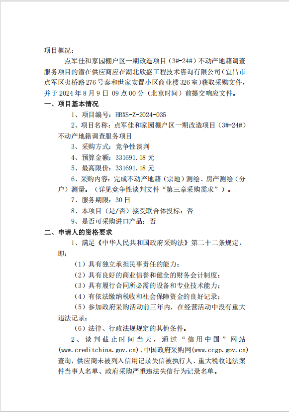 點軍佳和家園棚戶區(qū)一期改造項目(3#-24#)不動產(chǎn)地籍調(diào)查服務(wù)項目談判公告